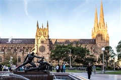 下午抵达悉尼,之后游览市区。 【海德公园】(不低于20分钟): 百年前这里曾经是跑马场,后来改建为街心花园,并取著 名的英国伦敦的“海德公园”命名。 【圣玛丽教堂】(不低于10分钟): 悉尼天主教社区的精神家园。大教堂由当地砂岩建成, “哥特式”建筑风格是欧洲中世纪大教堂建筑遗风。 【悉尼新南威尔士州美术馆】(不低于30分钟): 澳洲国内三大美术馆之一,陈列着澳洲境 内优秀的艺术作品,馆内主要展出的是澳大利亚各个时期的美术作品,也有印象派大师和 亚洲的美术作品。 【悉尼游船+游船晚餐】(约 1小时): 搭乘游船畅游悉尼港,在船上欣赏悉尼迷人的海港 风光,并在船上享用自助式晚餐。