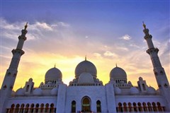 跨越著名【铁链桥】前往阿布扎比,途径世界第三大/阿布扎比最大清真寺【扎耶德清真寺】该清真寺是为已故老国王扎伊德所建,内有以数以万计的宝石向前的水晶珠宝吊灯,【全世界最大手工地毯】, 整个建筑群使用希腊的玉石包裹,白色典雅格外庄严肃穆(因开放与关闭时间比较特殊,若抵达时属关闭时间,则安排外观,约20分钟)【注:谢赫扎伊德清真寺 入内参观时男士需穿着有领衬衫及长裤,女士不能穿露肩的上衣及短裙,因此,如有客人要求入内参观,请客人提前准备合格服装,此景点为免费开放,但因礼拜日 或其他公众原因将不允许对外参观】;