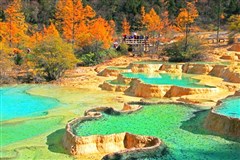 黄龙风景区位于四川省阿坝藏族羌族自治州松潘县岷山主峰雪宝顶下,以彩池、雪山、 峡谷、森林“四绝”著称于世。巨型地表钙华坡谷,如一条金色巨龙,蜿蜒于原始林 海和石山冰峰之间。钙华洞穴,钙华盆景等,一应俱全,是一座世所罕见的天然钙化 博物馆。享有“世界奇观”、“人间瑶池”之誉。(注:黄龙景区海拔 3000 多米 , 部分游客可能有轻微高原反应,请自备抗高原反应的药物或氧气。